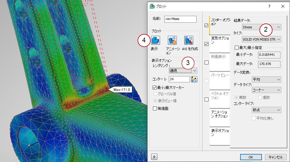 次の手順で、まずフォンミーゼス応力をモデル上に表示し、レンダリング オプションを調整します。
