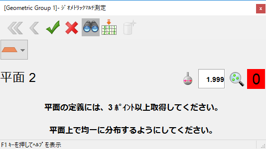 測定ポイント数がフィーチャーの寸法の計算に足りない場合は、ポイント カウンターの背景が赤色になります。緑色の背景は、寸法を計算可能であることを示します。
