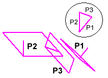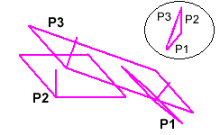 次図の例では、P2 のベクトルが P1 のベクトルに追加され、P3 のベクトルとあわせて新規平面を作成しています。