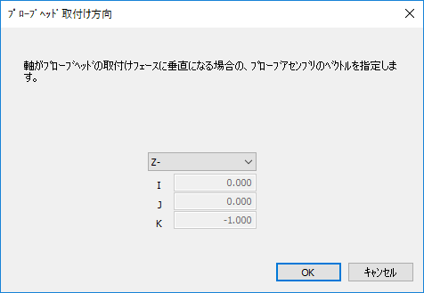 - プローブヘッド取付け方向 ダイアログのリストから、ヘッドと平行なマシン軸を選択します。