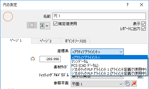 検査シーケンスに単一のアライメントのみが存在する場合、[座標系]リストを既定設定の[<アクティブアライメント>]のままにします。PowerInspect は、当該アライメントまたは検査シーケンスの最終ベスト フィット アイテムを自動的に使用します。