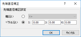 既定で、DRO はプローブ中心座標を表示します。このダイアログを使用し、コンタクトポイント座標補正 の選択時の補正方向を指定します。