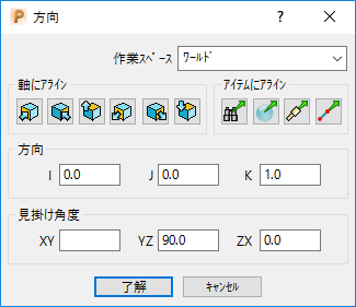 方向 ダイアログを使用し、アイテムの方向を編集します。方向は単位ベクトルに関して定義されます。