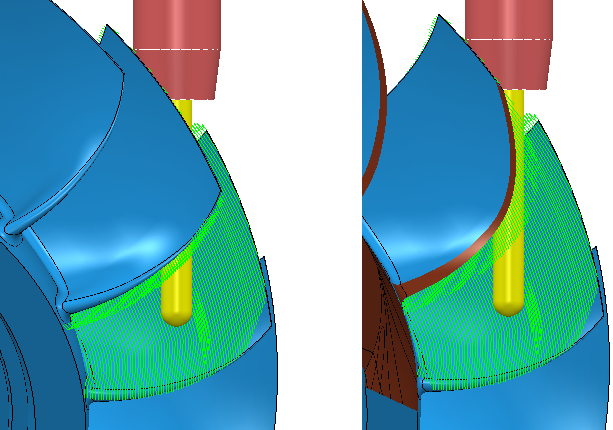 - 垂直な工具を横から眺めるように、ビューを変更します。