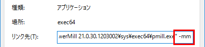 デスクトップの PowerMill ショートカットにスイッチを追加すると、異なるモードで PowerMill を起動することができます。次のスイッチを使用できます。