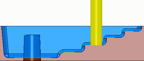 この例では examples フォルダーの Flats.dgk モデルを使用し、ツールパスの解析に 断面 を使用する方法を説明します。サンプル内で使用されるツールパスは、領域切削ツールパスで、領域 から 平坦部加工 が選択ています。工具はツールパスの任意の位置に配置されています。