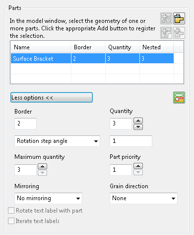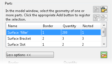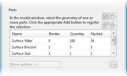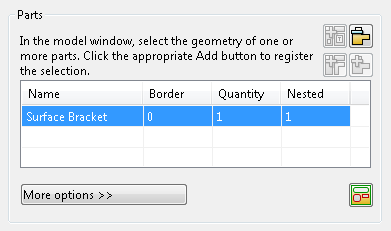 ボタンをクリックします。パーツは、ネスティング ダイアログの パーツ リストに追加されます。