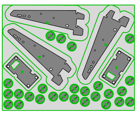 この例は、シートに 3 つの異なるパーツをネスティングする方法を示します。