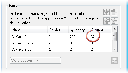 パーツ リストが更新され、ネスティングされたパーツ数が表示されます。