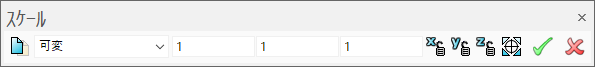 - ドロップダウンリストから、可変 を選択します。ツールバーが更新され、スケール係数ボックス X Y Z が表示されます。
