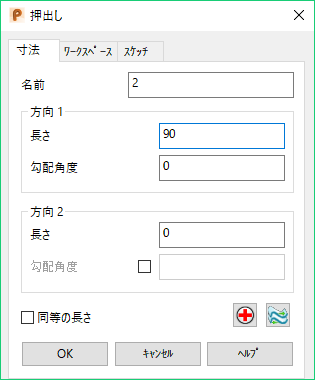 このタブを使用して、押し出しサーフェスの寸法を指定します。
