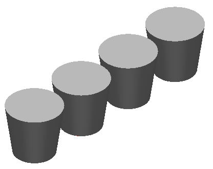 勾配角度 - 押出しソリッドのベースカーブと反対側の端のカーブ間の勾配角度です。 角度は基準平面、または、カーブのベストフィット平面に垂直な軸から計測されます。