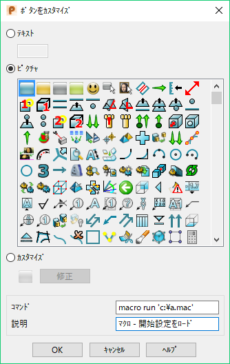 カスタマイズ - 修正 ボタンが使用可能になります。修正 ボタンをクリックして、選択したピクチャーを ピクチャーをカスタマイズ ダイアログで編集し、ツールバーに追加します。
