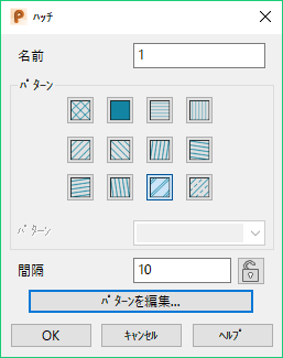 パターンを編集 - ハッチパターンを編集 ダイアログを表示して、選択ハッチパターンを編集します。