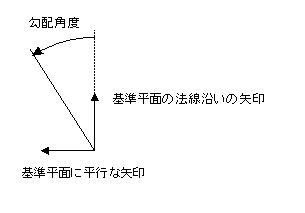 勾配角度は、次図のように矢印間で計測されます。