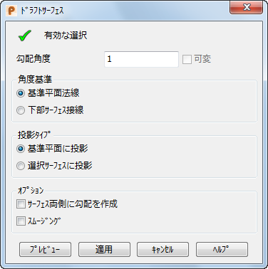 このオプションの選択時には、プレビュー ボタンは利用できません。適用 をクリックすると、可変ドラフト ダイアログが表示されます。このダイアログを使用して、可変勾配角度を入力します。