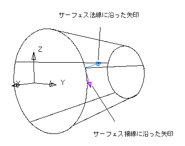 下部サーフェス接線 オプションを選択した場合、矢印は次の方向を向きます。
