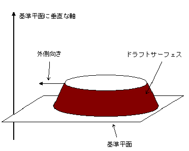 外向きに投影するドラフトサーフェスが必要な場合、基準平面に平行な矢印が外向きであることを確認します。