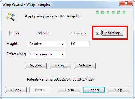 [タイル設定]ダイアログが表示されます。これには、ラッパー アイテムを使用してタイル パターンを作成するための 4 つのタイル コントロールが含まれます。