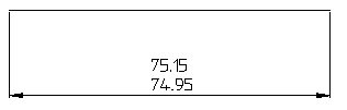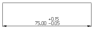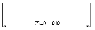 アライメントタイプ 3 - 寸法値 が 75 で、トレランスの上限が 0.15、下限が -0.05 の場合、次図のような寸法が表示されます。