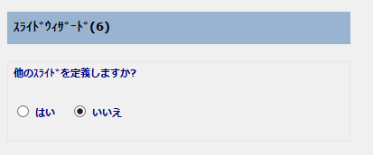 はい - スライドウィザード のページ 1 に戻り、他のスライドを定義します。