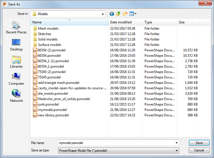 注: [オプション]ダイアログの[モデル]ページを使用して、保存したモデルの既定のフォーマットと場所を指定します。