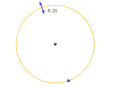 作成モード中に、さらに円の作成を継続することができます。次の円弧の半径は、新規半径を指定する場合を除き、前の円弧と同じになります。これを行うには、グラフィックウィンドウに直接、半径コマンド r を入力し、その後に新規値を入力します。サンプル