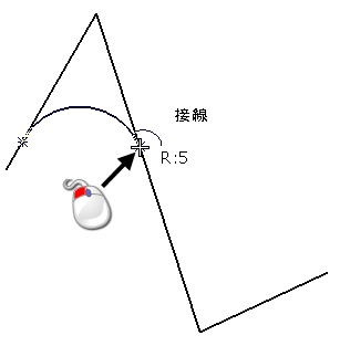 次の方法で、単一カーブの 2 つの不連続コーナー間 にフィレットを作成します。