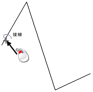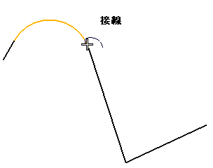 インテリジェントカーソルがオンの状態でカーソルをワイヤーフレームオブジェクト上で移動すると、接線を定義する場所で 「接線」 という語が表示され、(例えば 「終点」 が表示される場合など)それ以外の位置ではプログラムは始点が定義されると仮定します。