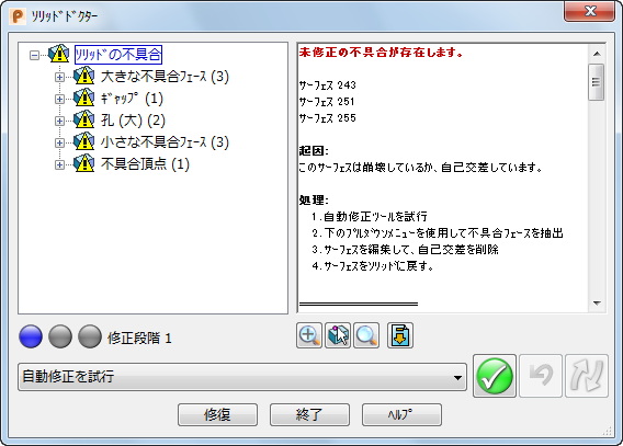 - エラーのあるサーフェス(3) をクリックします。