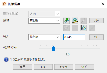 編集方向や編集タイプがダイアログ上で変更される度に、スケール表示が 1 にリセットされます。 このリセットはカーブの強度には影響しません。