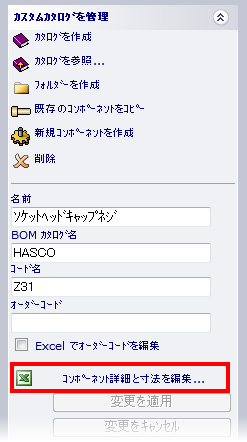 [コンポーネント詳細と寸法を編集]