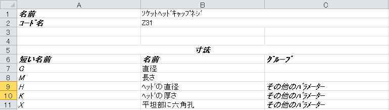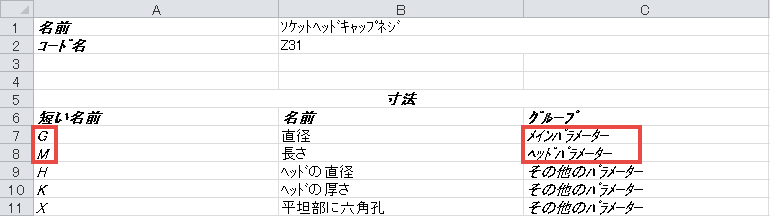 グループ名を持たない寸法は、メイン グループまたはパラメーターに含められます。