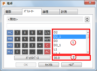 電卓を使用して数式を入力できる場合は常に、パラメーターを指定することもできます。