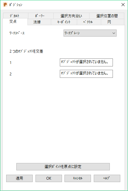 [適用]: ポジションを入力します。現行操作で複数のポイントが許可される場合は、ダイアログは閉じずに、さらにポイントを入力できる状態となります。そうでない場合は、ダイアログが閉じます。