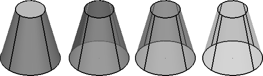透明度オプションを使用して、オブジェクトを透明にする、オブジェクトの透明度を表示、または、非表示にする、透明度レベルを指定することもできます。マテリアルが透明ではなくても、シェーディングオブジェクトに透明度を作成することができます。透明度はオブジェクトと共に保存され、マテリアルの設定に上書きされます。