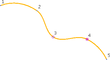 例えば、 ポイント 4 を Shift + クリック します。星を囲む円の記号によってマークされ、最後に選択したポイントであることが示されます。ポイント 3 はそのグラフィックハンドルを表示しなくなり、円でマークされ、これが選択されていることが示されます。