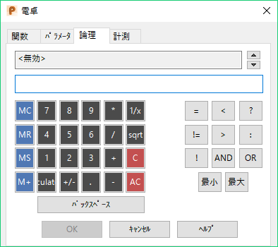 論理式の結果は 0 か 1 で表わされ、0 は偽、1 は真を表します。 ボタンを組合せて、さらに演算子を追加することができます。