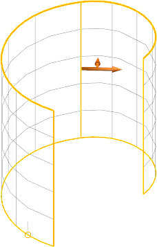 - 選択サーフェス上でポジションをクリックします。サーフェス法線の矢印が表示され、勾配角度と位置の曲率値がカーソルの下に表示されます。