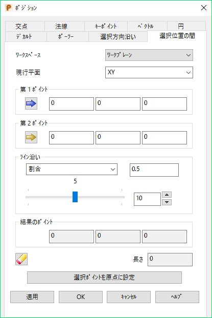 [適用]: ポジションを入力します。現行操作で複数のポイントが許可される場合は、ダイアログは閉じずに、さらにポイントを入力できる状態となります。そうでない場合は、ダイアログが閉じます。