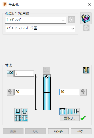 ダイアログには、選択した孔の カテゴリー と 用途 を反映したオプションが表示されます。