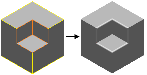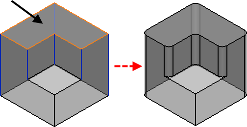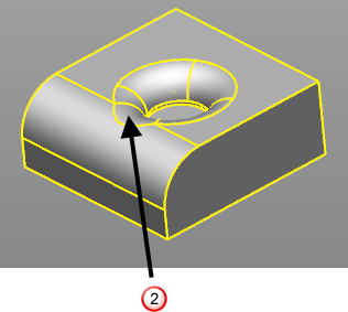 エッジを選択すると、そのエッジが属するソリッドフェースの全てのエッジを含む新規フィレットパスが選択されます。フィレットフェース とエッジ
