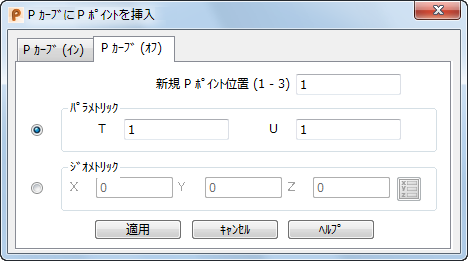 新規 P ポイント位置 - P カーブ上の、新規 P ポイント位置を定義します。3 を入力した場合、新規 P ポイントが 3 になり、以前のポイント 3 以降の全てのポイント番号が再設定されます。
