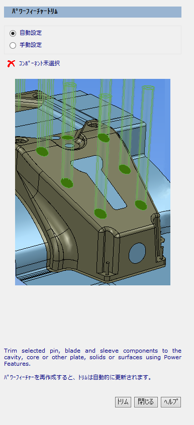- [ウィザード]タブ > [モールドを修正]パネル > [パワーフィーチャトリム]をクリックします。