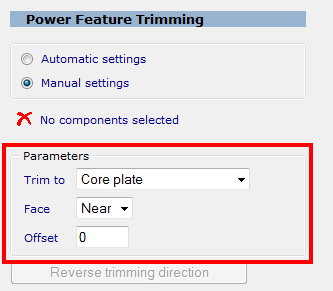 - 手動設定 を選択した場合、パラメーターセクションが表示されます。 このセクションで、ピンのトリムに使用するパラメーターを指定します。パラメーター セクションが表示されます。