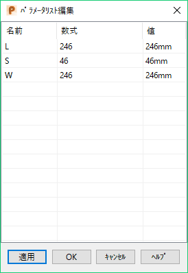 [適用]: 編集したパラメーターに従属する、すべてのパラメーターの値を更新します。