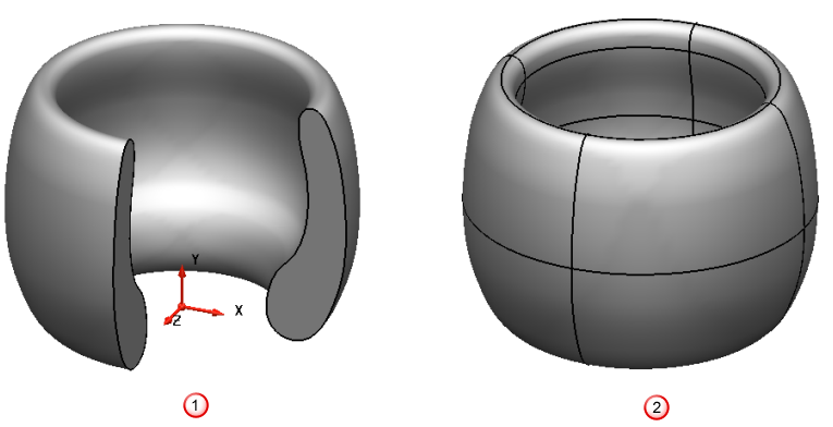 開いた回転ソリッドでは、ワイヤーフレーム / テキストオブジェクトが平坦で閉じている場合のみ、キャップが追加されます。