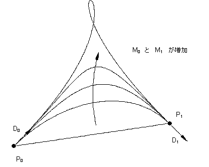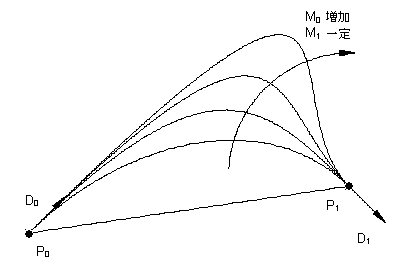 これらのコントロール ポイントは、終点(P0 と P1)の接線方向(D0 と D1)および接線強さ(M0 と M1)も定義します。