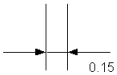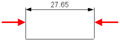 微少な寸法上の内部引出し線 - 寸法の外側両端に引出し線がある場合(次図参照)、ラインを追加して引出し線の矢印間をつなぎます。