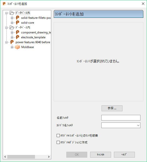 - 参照 - モデルに追加するコンポーネントを検索します。これらのコンポーネントは、アクティブではない閉じたモデルに保存されていなければいけません。